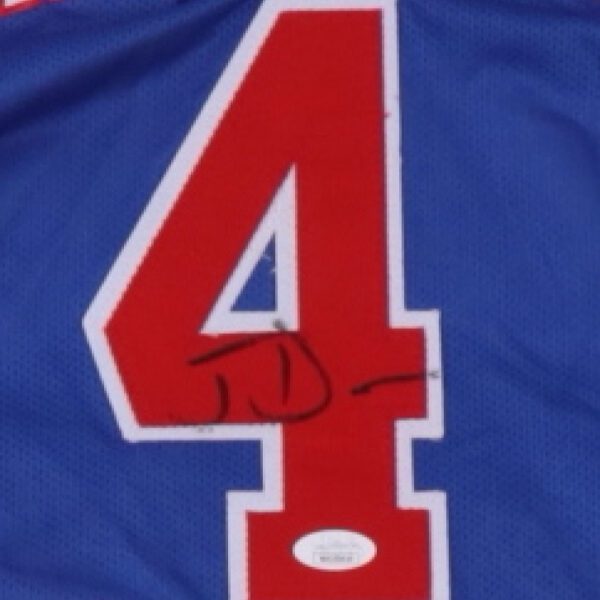 Custom on-court style jersey. Everything sewn on, size XL. Hand-signed by Joe Dumars (HOF) and Dennis Rodman (HOF). The autograph includes an official James Spence Authentication (JSA) hologram and matching COA for authenticity purposes.
